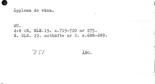 //// Äpplena de växa, //// ¦ //// * i //// i //// WJ. //// 4:8 OR, SLS.19. s.719-720 nr 275-N. SLS. 22. nothäfte nr 2. s.688-689. //// i //// 57 ÅBO. //// ! //// 1 ////