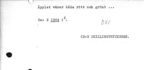 //// Äpplet växer "båda rött och grönt . •. //// * //// KB:S SKILLINGTRYCKSREG. //// * ////