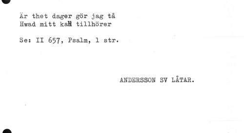 //// Är thet dager gör jag tå Hwad mitt kaH tillhörer //// Se: II 657, Psalm, 1 str. //// ANDERSSON SV LÅTAR. //// o ////