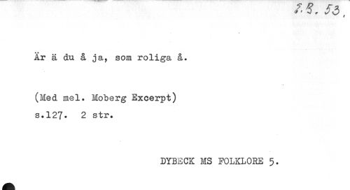 //// iy o //// t //// / //// År ä du å ja, som roliga å. //// (Med mel. Moberg Excerpt) s.127. 2 str. //// DYBECK MS FOLKLORE 5. ////