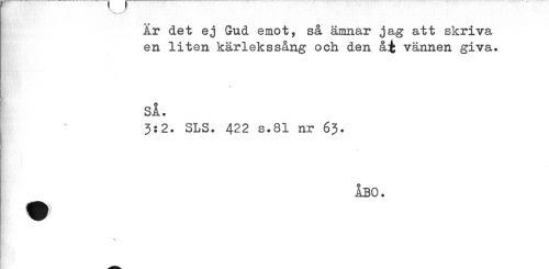 //// År det ej Gud emot, så ämnar jag att skriva //// en liten kärlekssång och den å:fc vännen giva. //// « //// si. //// 3:2. SLS. 422 s.81 nr 63. //// åbo. //// > ////