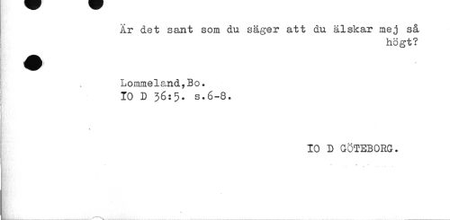 //// Är det sant som du säger att du älskar mej så //// högt? //// A //// Lommels,nd,Bo. 10 D 36:5. s.6-8. //// t //// 10 D GÖTEBORG. //// * 55 .. //// V ////