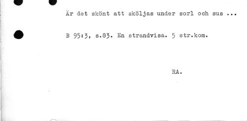 //// Ar det skönt att sköljas under sorl och sus . B 95 J 3> s.83* En strandvisa. 5 str.kom. //// RA. //// t ////