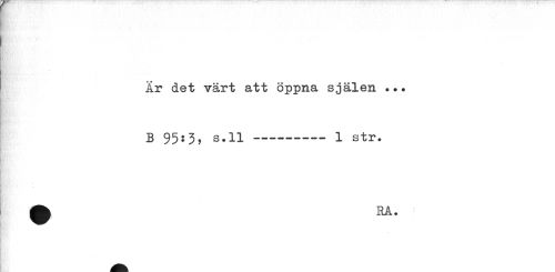 //// År det värt att öppna själen . •* B 95:3, s.ll---1 str. ////