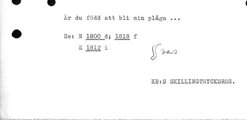 //// År du född att bli min plåga ... //// 9 Se: N 1800 d; 1818 f //// E ^ i //// KB:S SKILLINGTRYCKSREG. ////