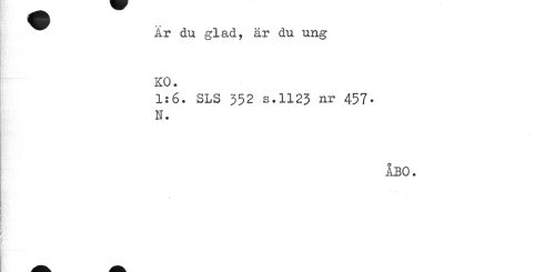//// Ar du glad, är du ung KO. //// 1:6. SLS 352 s.1123 nr 457-N. //// ÅBO. ////
