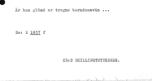 //// År han glömd er trogne barndomsvän ... //// Se: 3 1857 f //// KB:S SKILLINGTRYCKSHEG. //// y ^ \ _ „ ... ////