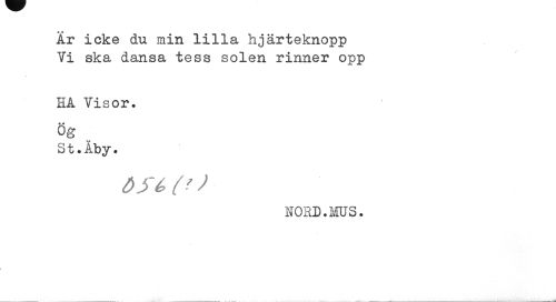 //// Är icke du min lilla hjärteknopp Vi ska dansa tess solen rinner opp //// HÅ Yisor. //// Ög //// St.Åby. //// Öfé (t > //// KORD.MUS. ////