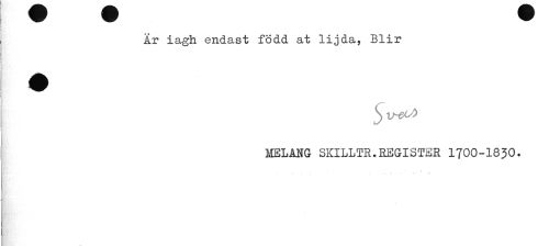 //// Är iagh endast född at lijda, Blir //// MELÅNG SKILLTR.REGISTER 1700-1830. ////