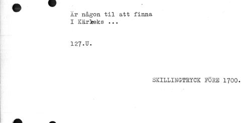 //// Är någon til att finna I Kärieks ... //// 127.U. //// SKILLINGTRYCK FÖRE 1700. //// 1 % . • • ////