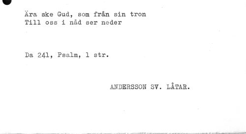 //// Ära ske Gud, som från sin tron //// Till o s s i nad ser neder //// $ //// Da 241, Psalm, 1 str. //// ANDERSSON SY. LÅTAR. ////