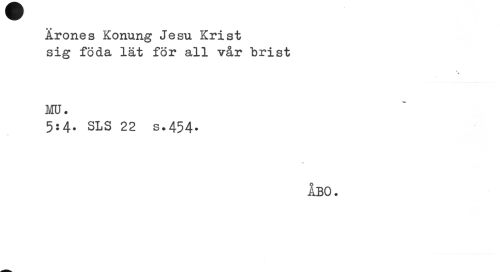 //// Ärones Konung Jesu Krist sig föda lät för all vår brist //// * //// MU. //// 5:4. SLS 22 s.454. //// ÅBO. ////