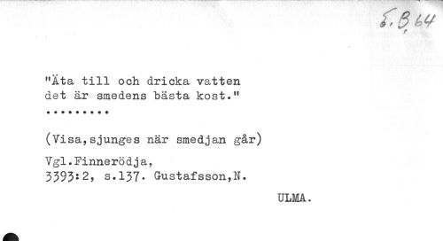 //// /, 3 w t //// % « //// MÄta till och dricka vatten det är smedens bästa kost." //// (Visa,sjunges när smedjan går) Vgl.Pinnerödja, //// 339352, s.137. Gustafsson,N. //// ULMA. ////
