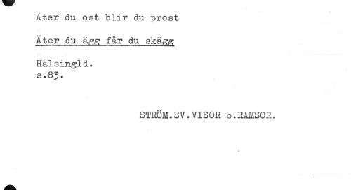 //// Äter du ost blir du prost Äter du ägg får du skägg //// 4 i //// Hälsingld. //// s.83. //// STRÖM.SV.VISOR o.RAMSOR. //// « ////