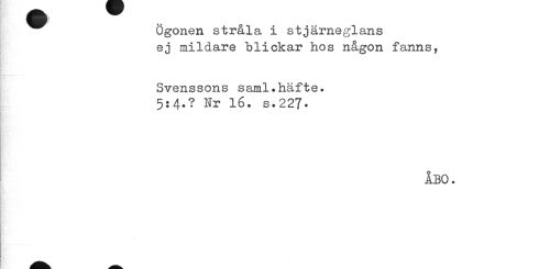 //// I ¦] //// Ögonen stråla i stjärneglans ej mildare blickar hos någon fanns, //// Svenssons saml.häfte• //// 5:4.? Nr 16. s.227- //// ÅBO. ////