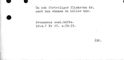 //// Öm och förtroliger flickorna är, emot den vännen de håller kär. //// Svenssons saml.häfte. //// 10:4»? Nr 27. s.78-79- //// ÅBO. //// HRw¦•'. ////