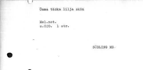 //// 1 —___ //// Ömma täcka lilja skön //// E I //// Mel.not. s.020. 1 str. //// SÖDLING MS. ////