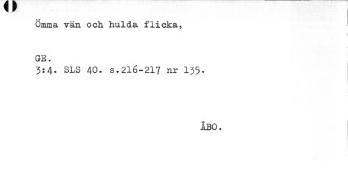 //// Ömma vän och hulda flicka, //// i i //// GE. //// 3:4. SLS 40. s.216-217 nr 135. //// ÅBO. ////