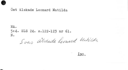 //// Ömt älskade Leonard Matilda NA. //// 5:4- SLS 24. s.122-123 nr 61. N. //// f^ //// i BO. ////
