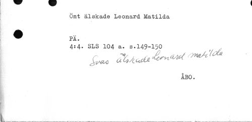 //// Ömt älskade Leonard Matilda //// ^ PÄ. //// 4:4. SLS 104 a. s.149-150 //// ÅBO. //// | ////