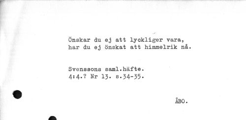//// Önskar du ej att lyckliger vara, har du ej önskat att himmelrik nå. //// Svenssons saml.häfte. //// 4:4.? Nr 13. s.34-35. //// ^ ÅBO. ////