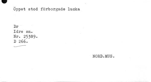 //// Öppet stod förborgade lucka Dr //// Idre sn. //// Nr. 25389-D 266. //// WORD.MUS. ////