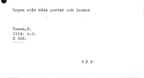 //// Öppen står både portar och luckor //// i //// « //// Tanum,B. 1154. s.2. //// d 266. //// * 1 ^—. //// VF F. ////