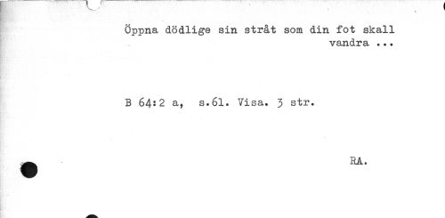 //// Öppna dödlige sin stråt som din fot skall //// vandra ..• //// B 64*2 a, s.6l. Visa. 3 str. ^ HA. ////