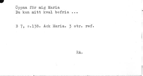 //// Öppna för mig Maria //// Du kan mitt kval befria ... //// i //// i //// B 7? s.138. Ack Maria. 3 str. ref. //// i //// i. //// HA. //// W //// ¦ //// 1 ////