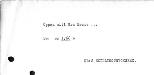 //// Öppna mitt öra Herre ..? Se: Zz 1766 b //// KB: S SKILLIHGTRYCKSREG. //// . • 11 * ' •» ////
