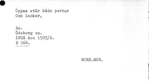 //// Öppna står både portar Och luckor, //// 7 r //// i //// ! //// Ds. //// Ödeborg sn. IPGH Åco 1507/6. D 266. //// NORD.MUS. ! //// i ¦ //// 1 //// 1 //// i ////