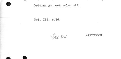 //// ^P Örterna gro och solen skin //// % //// Del. iii. s.36. //// t //// aewidsson. //// % ////