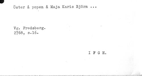 //// Öster å popen å Maja Karis Björn ... //// * //// 7g. Fredsberg. //// 2768, s.16. //// I F G H. ////