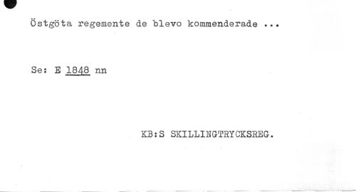 //// Östgöta regemente de "blevo kommenderade Se: E 1848 nn //// KB:S SKILLIH&THTCKSBBC. ////