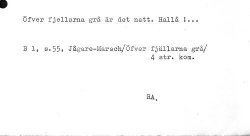 //// Öfver fjellarna grå är det natt. Hallå !... //// TT //// Bl, s.55? Jagare-Marsch/Öfver fjällarna grå/ //// 4 str. kom. RA. ////
