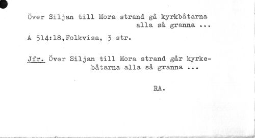 //// Över Siljan till Mora strand gå kyrkbåtarna //// alla så granna ... //// A 514:18,Folkvisa, 3 str. //// i I //// Jfr. Över Siljan till Mora strand går kyrkebåtarna alla så granna ... //// 1 //// 1 //// RÅ. //// 1 //// ^ „'«i 1 J,ikl «. af. ////