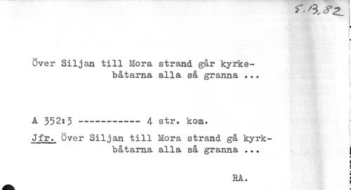 //// 7 //// I //// • W ' 5 //// M . . 'i //// b //// ¦ • I //// Över Siljan till Mora strand går kyrkebåtarna alla så granna ... //// A 352:3 --- 4 str. kom. //// Jfr. Över Siljan till Mora strand gå kyrkbåtarna alla så granna ... j //// i //// l p //// RA. | ////