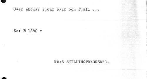 //// f //// Över skogar sjöar byar och fjäll ... . //// j //// f //// V * //// Se: E 1880 r //// * i //// t i //// 1 //// KB:S SKILLINGTRYCKSRBG. //// i //// I ////