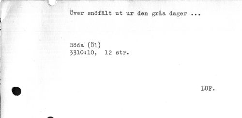 //// Över snöfält ut ur den gråa dager ?. ? //// Böda (Öl) 3310:10, 12 str. //// K- //// ^fe LUP. //// I ////