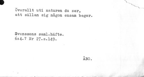 //// w //// \ -v //// Överallt uti naturen du ser, att sällan sig någon ensam beger. //// Svenssons saml.häfte. //// 6:4-? Nr 27.S.I49. //// % //// ÅBO. //// r //// i * . éLi. . A...ii-it .. ^^...¦... h^l.-.. iUUm^^mu .^uu» ^-'-.Äå^-. - * — - ' ... •• ---— • ... ////