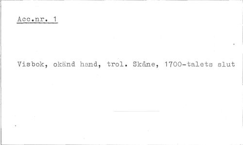 //// Aec.nr. 1 //// Visbok, okänd hand, trol. Skåne, 1700-talets slut ////