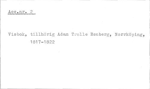 //// Aec.nr. 2 //// Visbok, tillhörig Adam Trolle Renberg, Norrköping, 1817-1822 ////