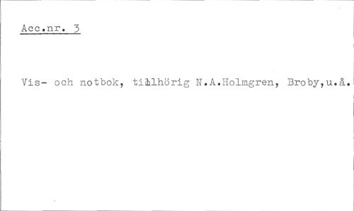 //// Aec.nr. 3 //// Vis- och notbok, tillhörig N.A.Holmgren, Broby,u.å. ////