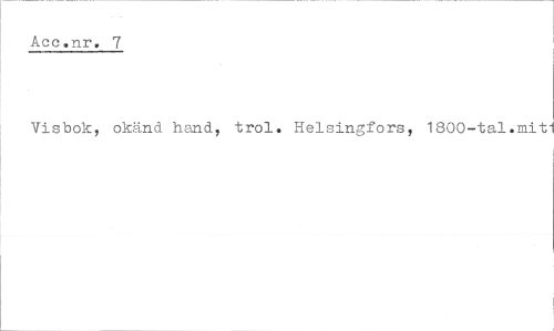//// Aec.nr. 7 //// Visbok, okänd hand, trol. Helsingfors, 1800-tal.mit1 ////