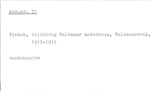 //// Acc.nr» 31 //// Visbok, tillhörig Waldemar Andersson, Waldemarsvik, 1913-1915 //// vaxdukspärm ////