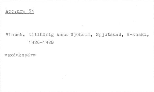 //// Aec.nr. 34 //// Visbok, tillhörig Anna Sjöholm, Spjutsund, W-koski, 1926-1928 //// vaxdukspärm ////