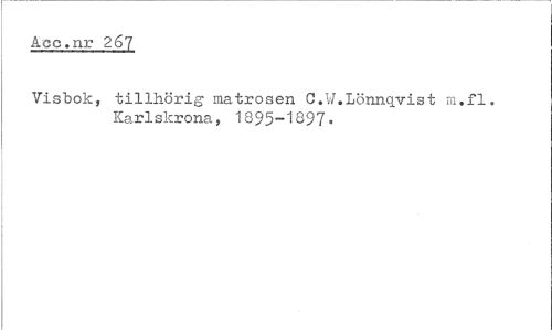 //// Aoc.nr 267 //// Visbok, tillhörig matrosen C.W.Lönnqvist m.fl, Karlskrona, 1895-1897. ////