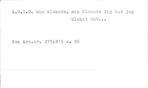 //// A.B.C.D. min älskade, min älskade dig har jag //// älskat ömt... //// Sva Aec.nr. 275:B15 s. 95 ////