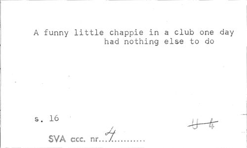 //// A funny little chappie in a club one day had nothing else to do //// s. 16 ^__ //// SVA ccc. nr..rZ... ////