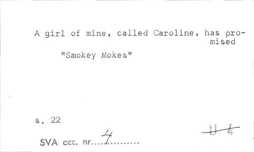 //// A girl of mine, ca-lled Caroline, has pro- //// mised //// "Smokey Mokes" //// s. 22 //// SVA ccc. nr..."^... ////
